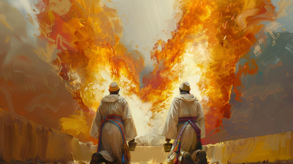 “Nadab y Abiú, hijos de Aarón, tomaron cada uno su incensario, y pusieron en ellos fuego, sobre el cual pusieron incienso, y ofrecieron delante de El Eterno fuego extraño, que él nunca les mandó. Y salió fuego de delante de El Eterno y los quemó, y murieron delante de El Eterno.” (Levítico 10:1-2)