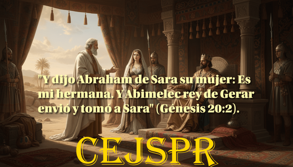 «De allí partió Abraham a la tierra del Neguev, y acampó entre Cades y Shur, y habitó como forastero en Gerar. Y dijo Abraham de Sara su mujer: Es mi hermana. Y Abimelec rey de Gerar envió y tomó a Sara» (Génesis 20:1-2).