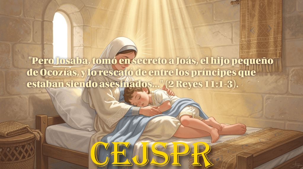 “Cuando Atalía, madre de Ocozías, vio que su hijo había muerto, se levantó y exterminó a toda la familia real. Pero Josaba, hija del rey Joram y hermana de Ocozías, tomó en secreto a Joás, el hijo pequeño de Ocozías, y lo rescató de entre los príncipes que estaban siendo asesinados. Lo escondió junto con su nodriza en una habitación interior, y así Atalía no pudo matarlo. Durante seis años permaneció oculto en la Casa del Eterno, mientras Atalía gobernaba el país” (2 Reyes 11:1-3).